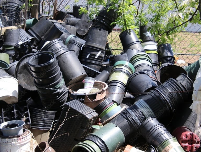 Plastic racks, trays and pots collected and recycled to prevent landfill overflow.